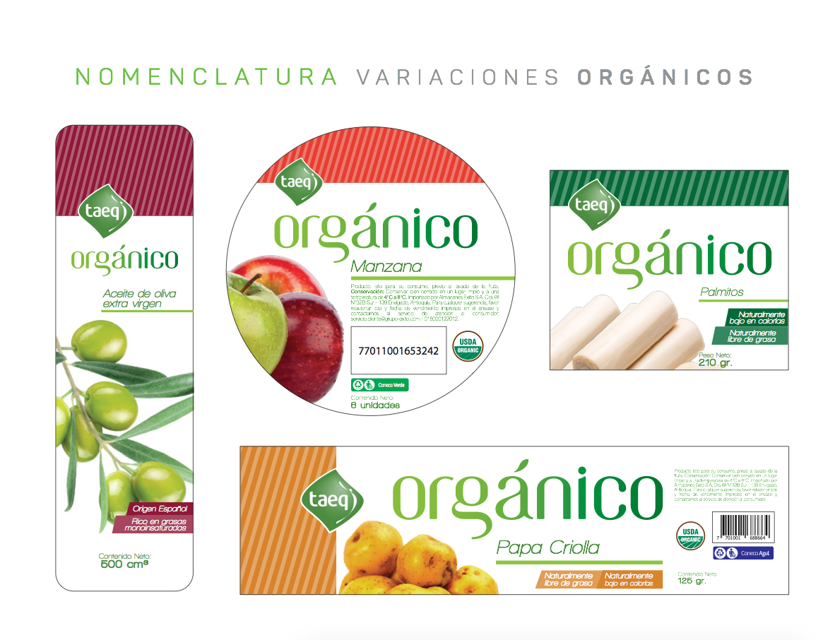 Rediseño y creación de línea de marca Orgánico de Taeq, Grupo Éxito.